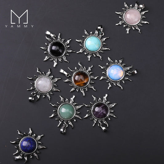 Yammy Sun Shape Pendant Natural Amethyst White Crystal Pendants Necklace,Retro Style Tiger Stone Opal Women Jewelry